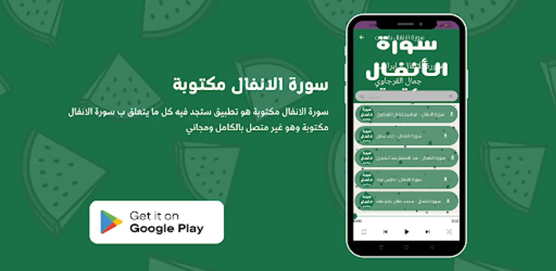 And the application of Surat Al-Anfal allows you to read and listen without the net, with the voice of Ahmed Al-Ajmi, to listen to Surat Al-Anfal without the need to stay inside the application of Surat Al-Anfal. Once you run Surat Al-Anfal, you can exit the application of Surat Al-Anfal and control it from outside the application
