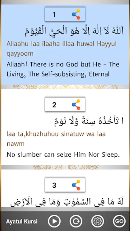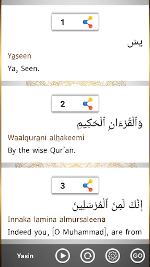 • GoTo option to search any particular verse of the Surahs mentioned in this App