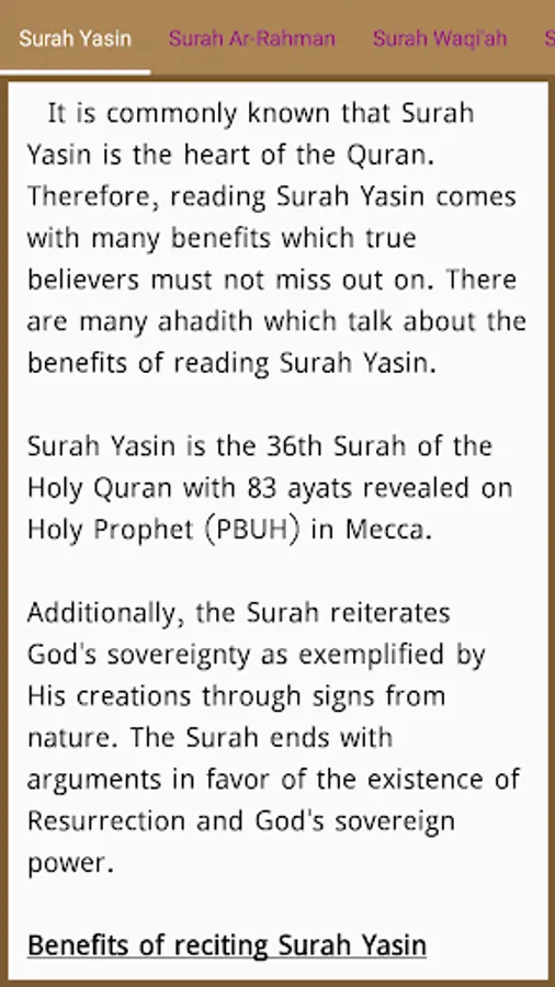 1. Surah Yaseen, which is the heart of Quran and has divine virtues associated with it, which awards innumerable
