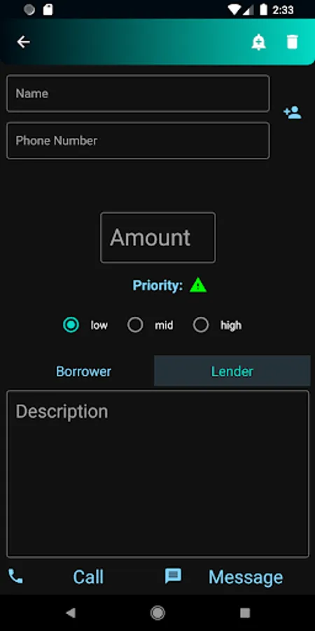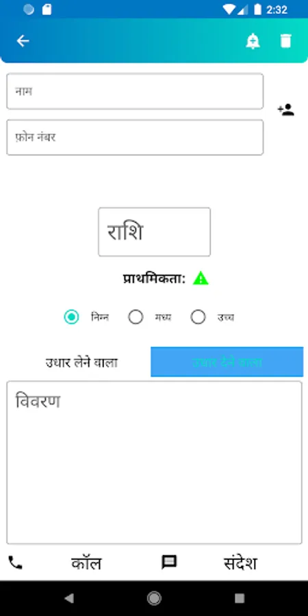 This app helps you to record your transactions of loans and credits. If you have taken a loan or given one to a friend or a relative, with this app the whole process becomes very easy to monitor your money. you can set reminders for important dates to complete the transactions. Contacting the person is very easy through this app. Dedicated button to call or message the person is provided in the app's user interface.