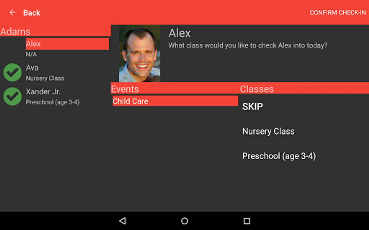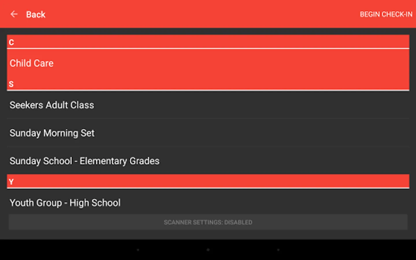 Check-In lets you search families and check them into their respective classes and groups all at once. Check-In complements staffed and self check-in in the desktop version of CDM+. When paired with a desktop software running the name badge print server, CDM+ Mobile will send badge print job requests to the desktop version for printing.