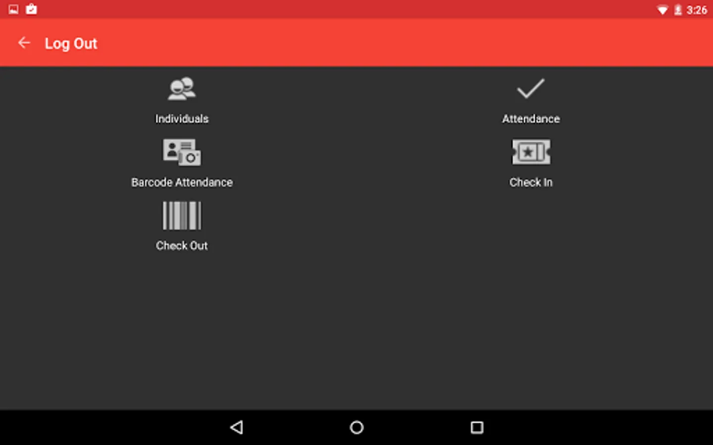 Check-Out lets you scan barcodes, or enter check-in codes manually, to check-out individuals from their respective classes, events or groups.