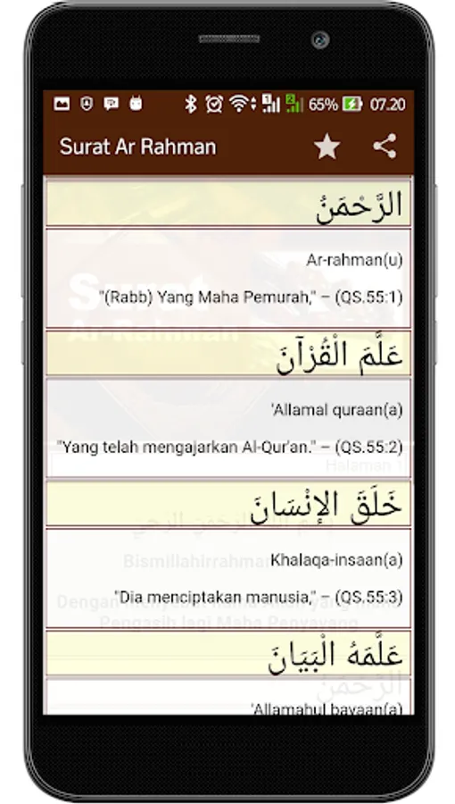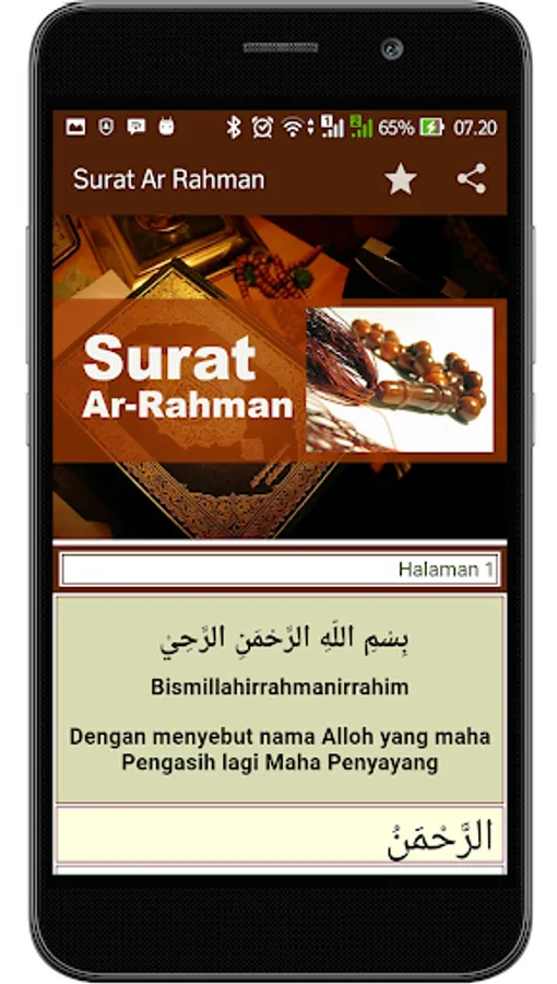 Surat Ar-Rahman merupakan surat ke-57 dalam kitab suci Alquran.Surat yang turun di Kota Mekah ini terdiri dari 78 ayat dan berisi kemurahan Allah SWT serta nikmat-nikmat yang telah diberikan kepada jin dan manusia.Semoga kita umat manusia selalu bersyukur atas nikmat yang di berikan. Surah Ar Rahman bersifat offline berjalan tanpa koneksi internet.