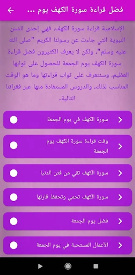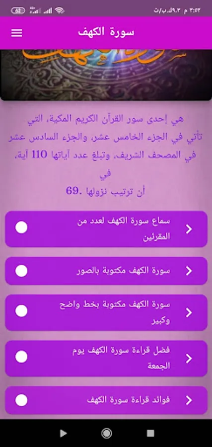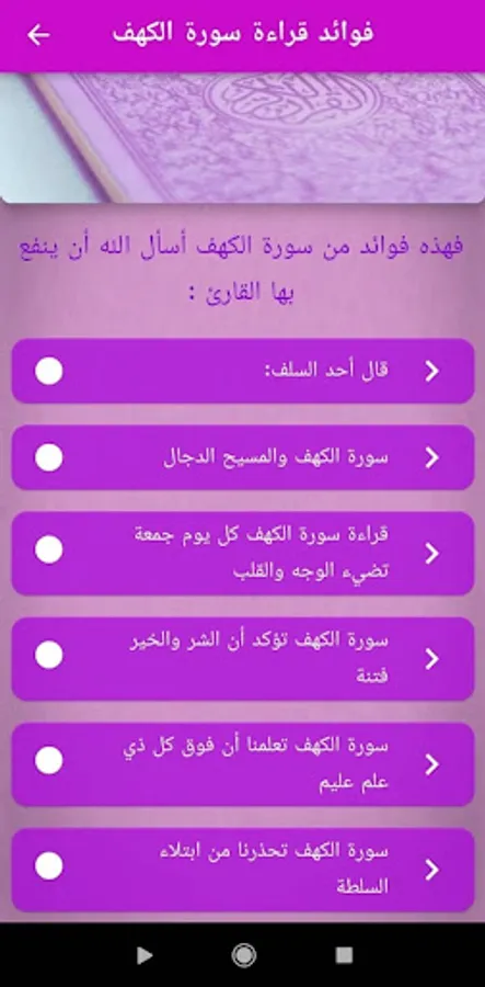 The contents of the application of reading Surat Al-Kahf on Friday: