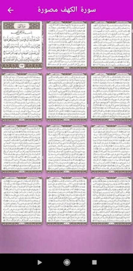 • Surat Al-Kahf in a large font, written in a harmonious and beautiful way.