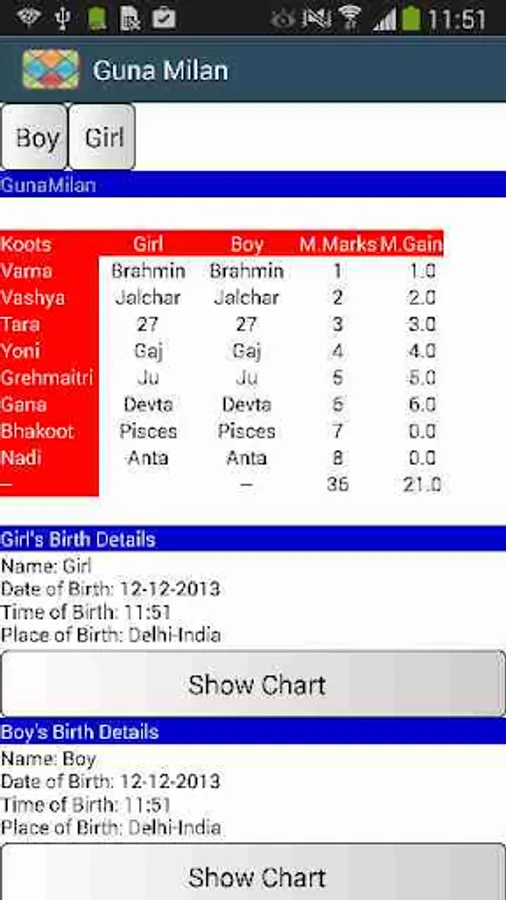 Unique Application where you could check your horoscope/Lagana Chart, Navamsha, Moon Chart/ Chandra Kundali, Lal Kitab Varsh Phal, Gandmool, Namakshar etc. You could also check Panchang for any City along with Festival details.