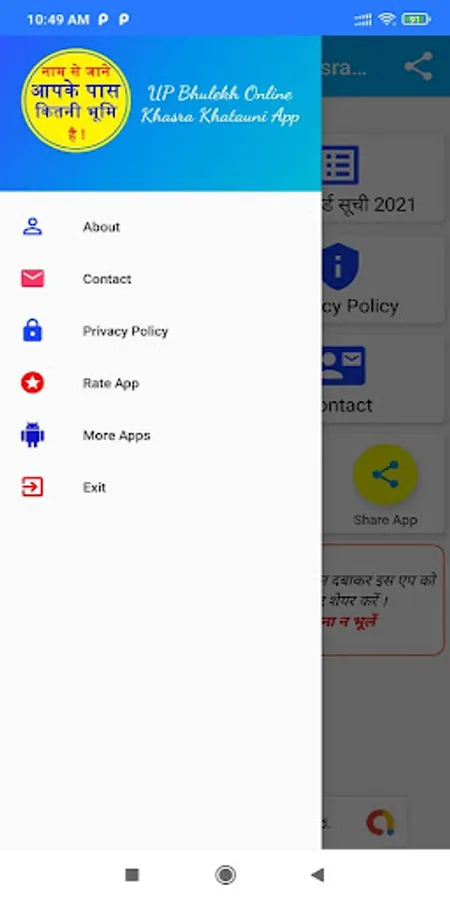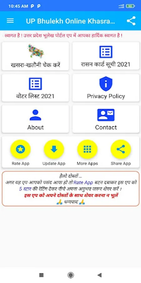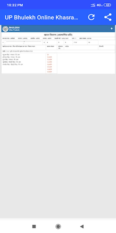This "UP Bhulekh Online Khasra Khatauni App"can help you to find the details of your Land Registry using your Name, Khasra, Khatauni and Gata Numbers. You can view and save the records in image form in your mobile.