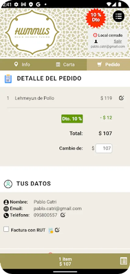 With this application you can make your online orders easily and quickly to local gastronomic Hummus