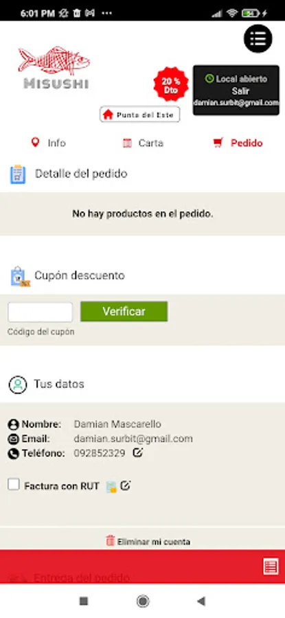 With this application you will be able to place your orders in an agile and safe way to the gastronomic place MISUSHI