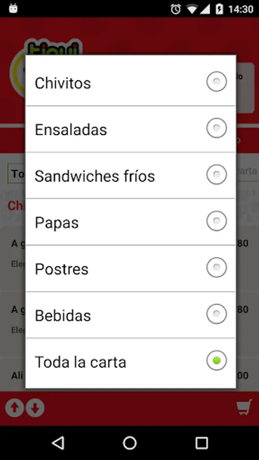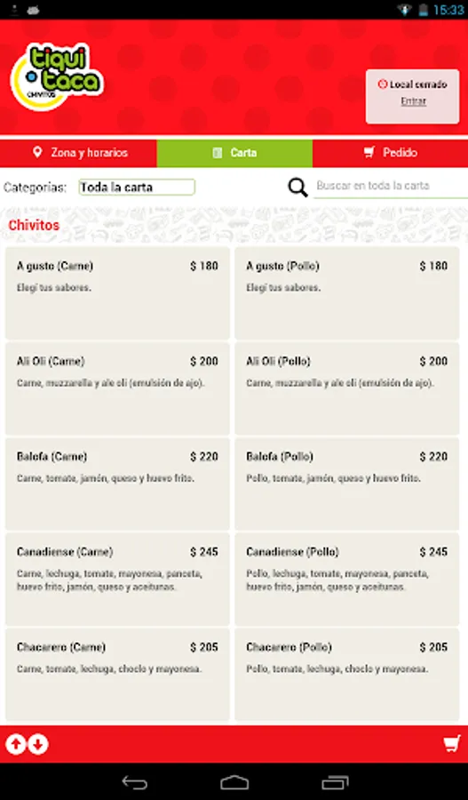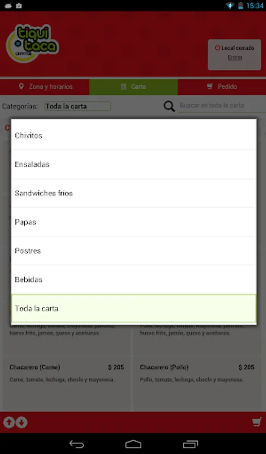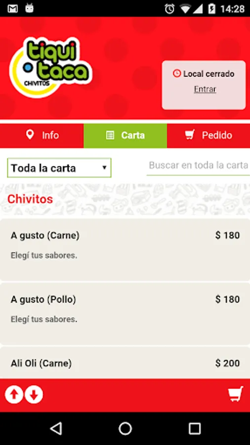 With this application you can carry out your orders to the local gastronomic Tiqui Taca branch Pta. Carts.