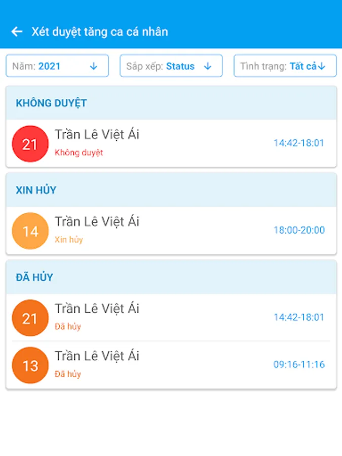 - Registering and approving the leave process, supplementing the lack of timekeeping, late arrival-early leave, work, etc.