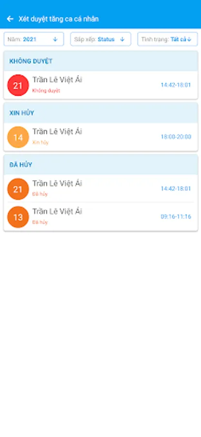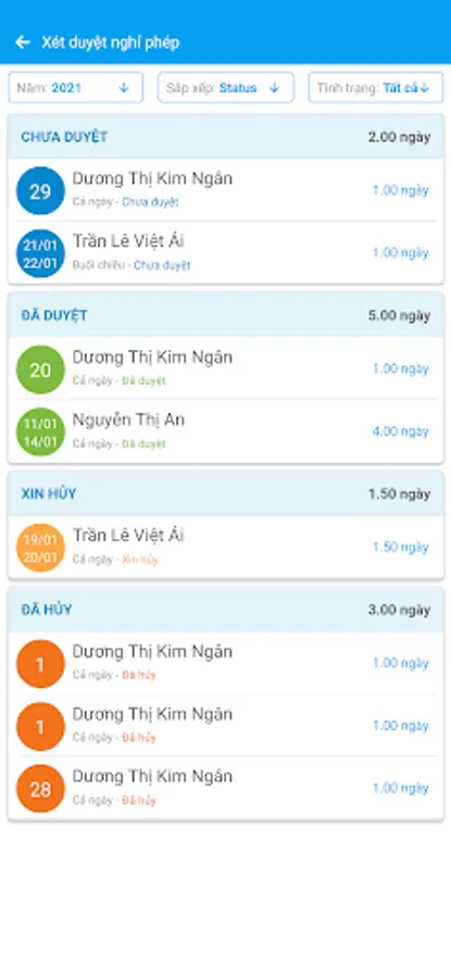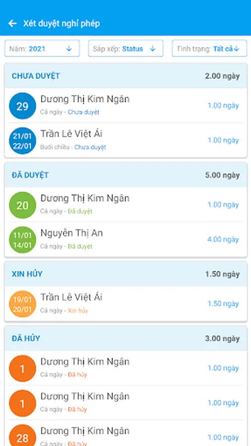 - Registering and approving the leave process, supplementing the lack of timekeeping, late arrival-early leave, work, etc.