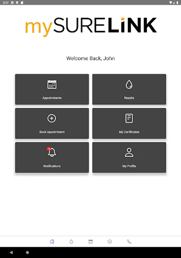 The mySureLink app allows you to share information on the go, from test results to vaccination records to training certificates. Just like your SureLink account, you can log in to the mySureLink app and: