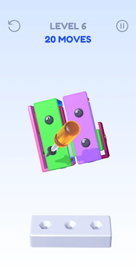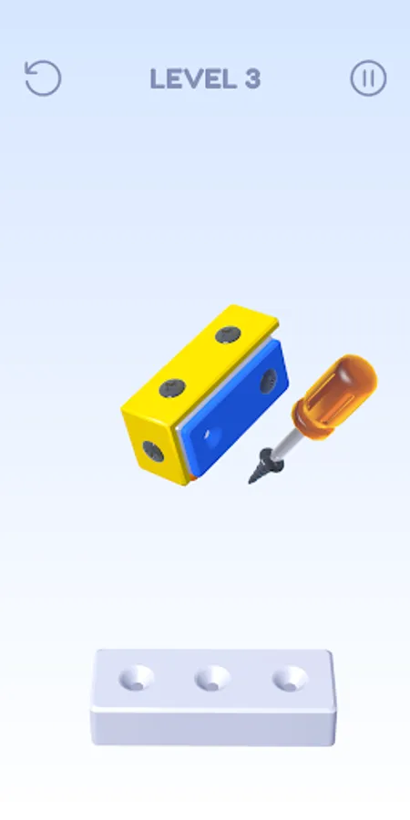 This is a puzzle game. You need to unscrew the screws to remove all the pieces, please think about the order of operations and remove them continuously
