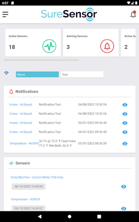 SureSensor is a remote monitoring solution. Through smart sensor technology and an analytics dashboard, SureSensor revolutionizes how organizations manage their operations by giving them the power to fix problems before they arise. SureSensor’s clients will see reduced overhead, increased system and operational efficiency as well as real time information leading to better organizational decision making.