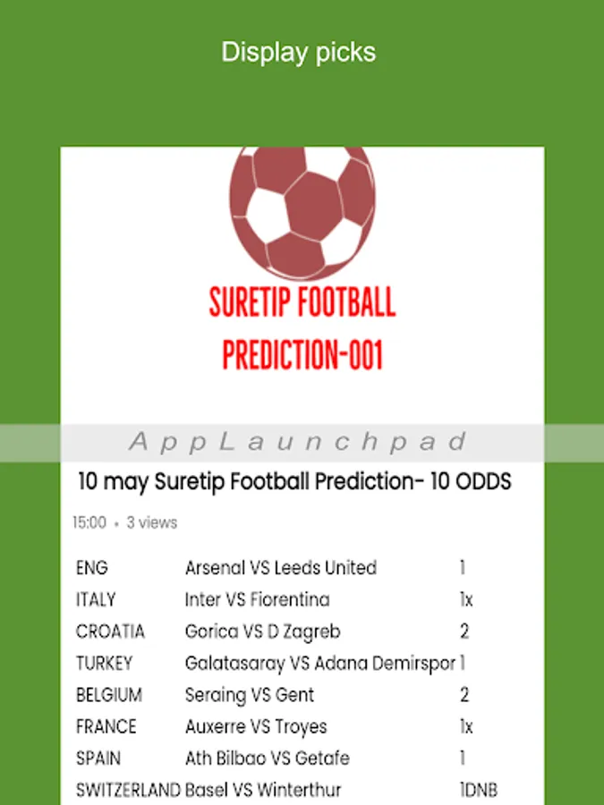 Suretip Football Prediction-01 App Provide three predictions Tips for soccer;