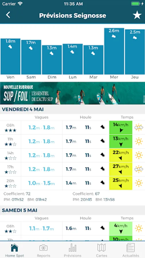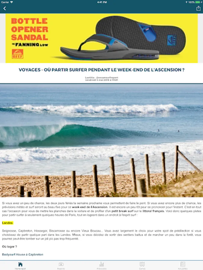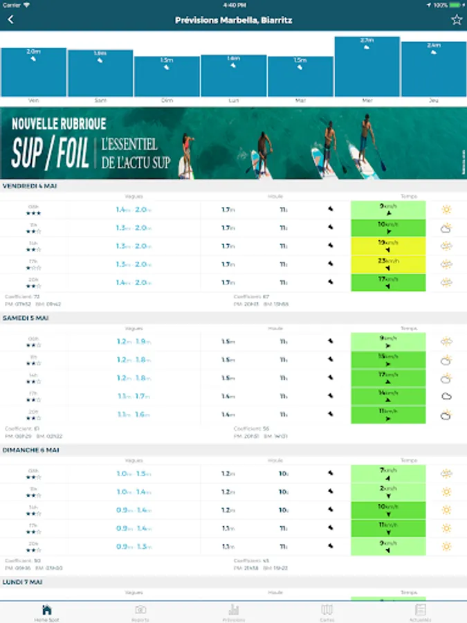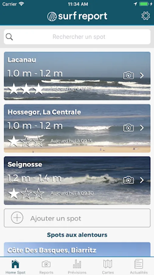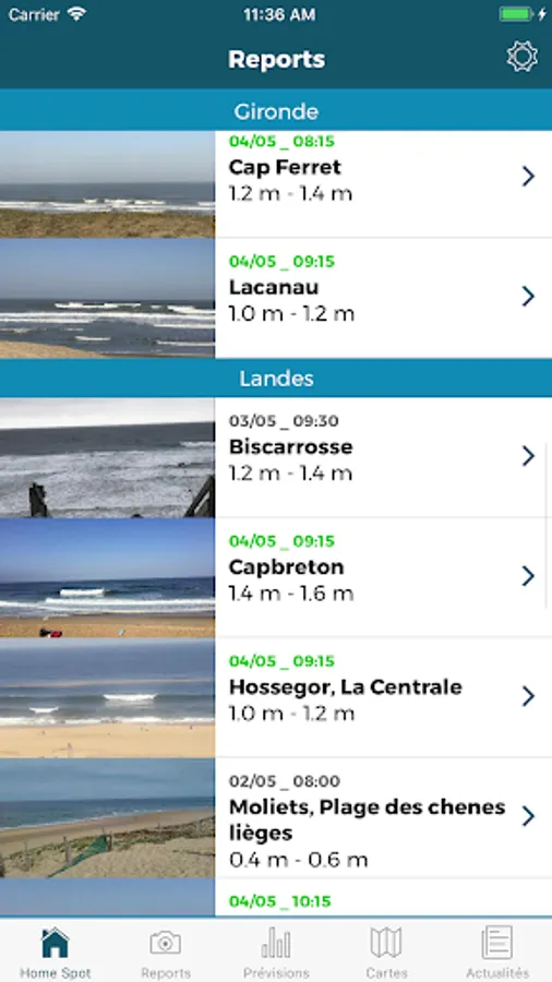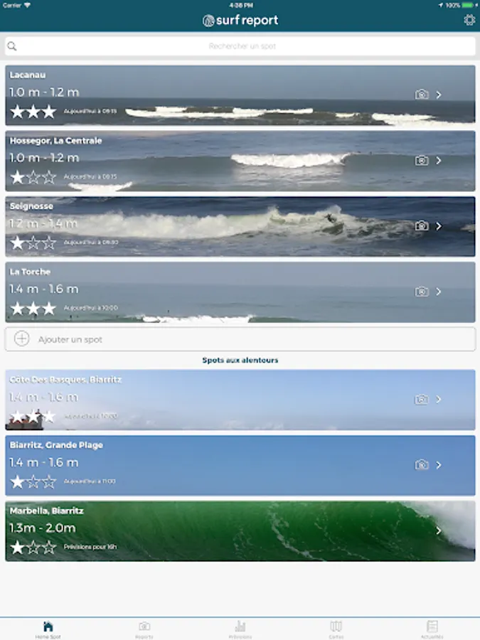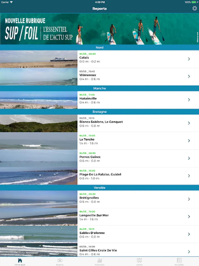 More than 30 daily reports: In all regions of France, but also in Morocco and overseas territories our reporters give you the ability to monitor conditions in picture or video with personalized advice. Beginner or expert, the reporter also specifies at what level match the waves of the day.