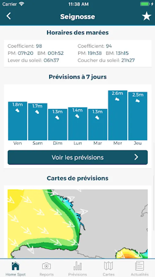 Weather forecasts 7 days: In this new version we have completely revised our forecast model. In France and the Caribbean, watch the forecast on your spot and discover the notes of the session 0 star whether to stay home to 3 stars for a perfect session. An indicator that lets you know in an instant where surf today.