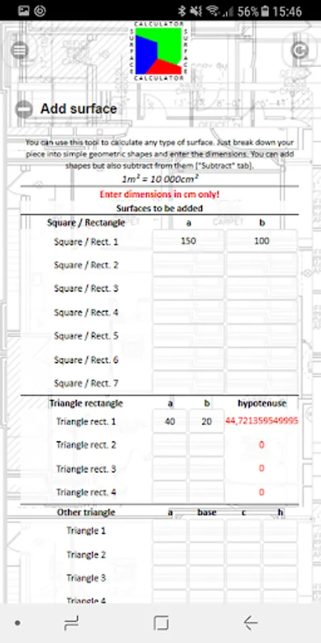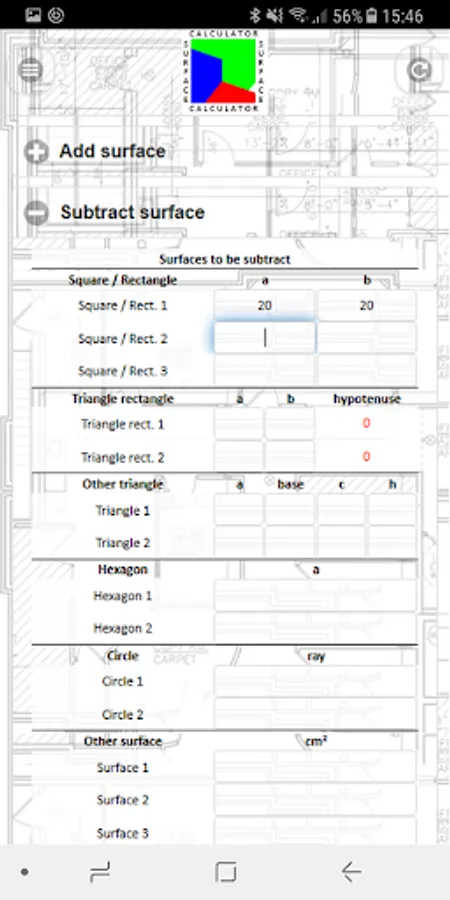 You can use this tool to calculate any type of surface. Just break down your piece into simple geometric shapes and enter the dimensions. You can add shapes but also subtract from them.