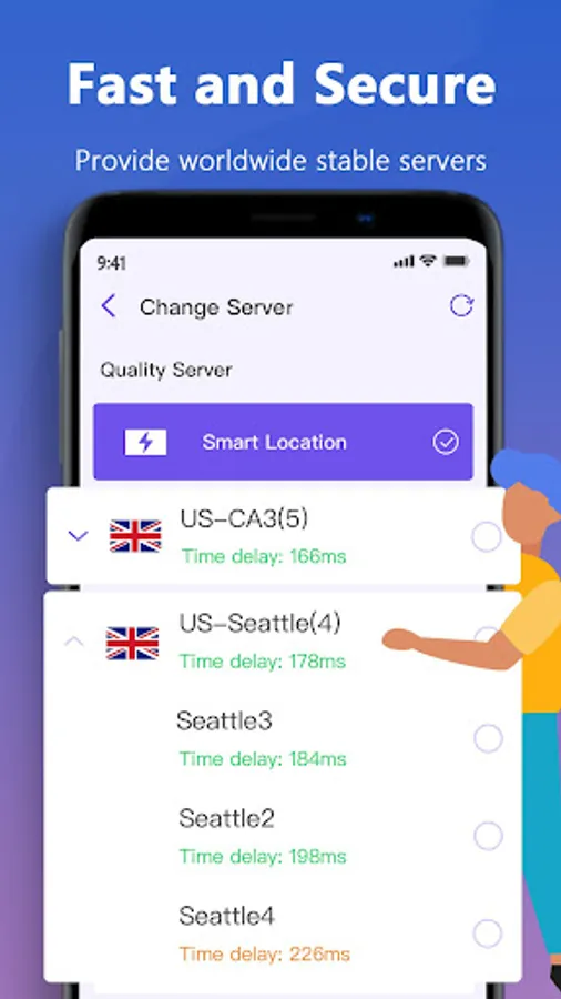 Stable servers all over the world (US, UK, Japan, Singapore, Germany, etc.), you can easily connect to high-speed servers with one click.