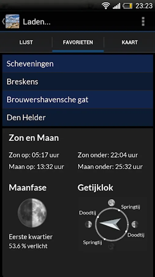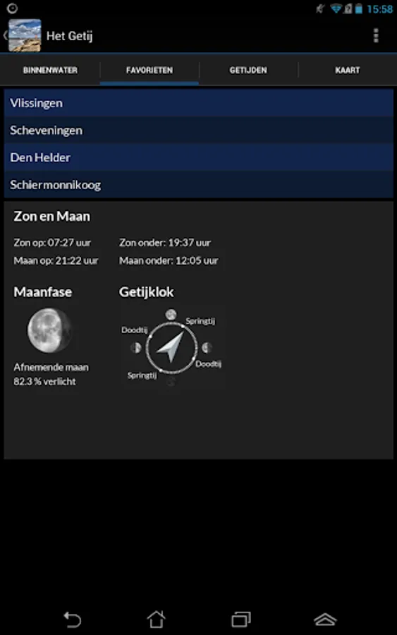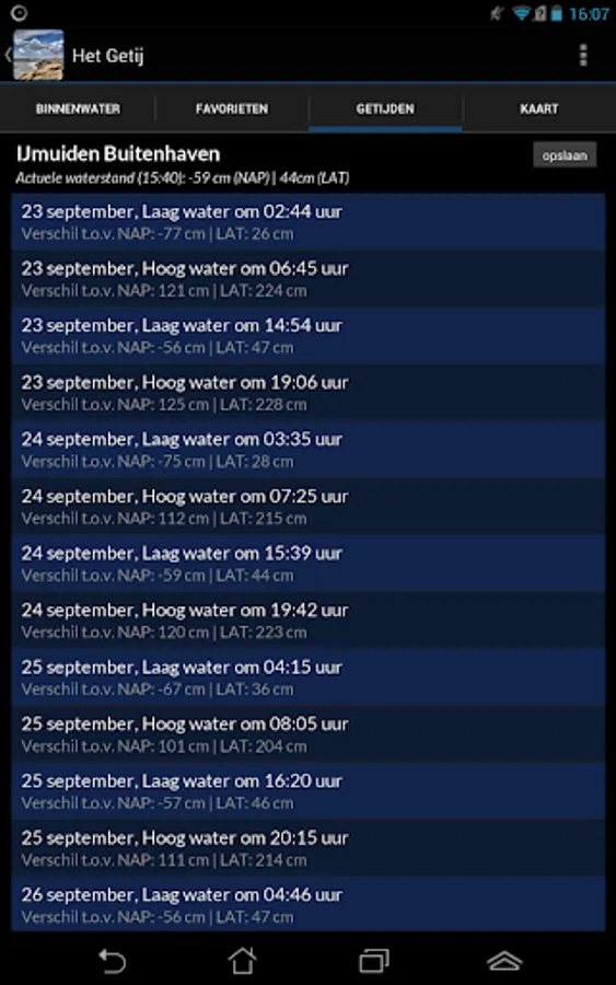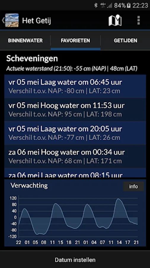 This is the most complete tidal app for the Netherlands, the North Sea and inland waterways.