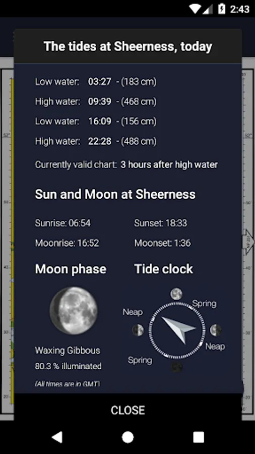 + Today's tide times for Sheerness, spring and neap tidal data, current moon data.