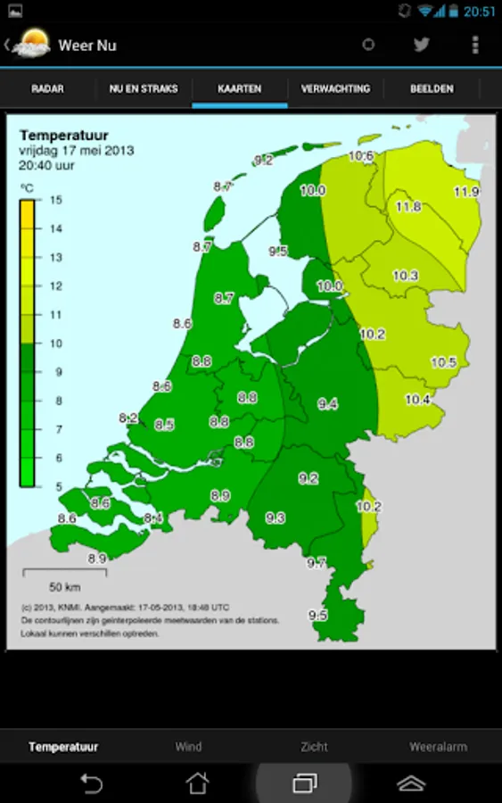 √ The current weather measurements of your site, directly from the KNMI station network.