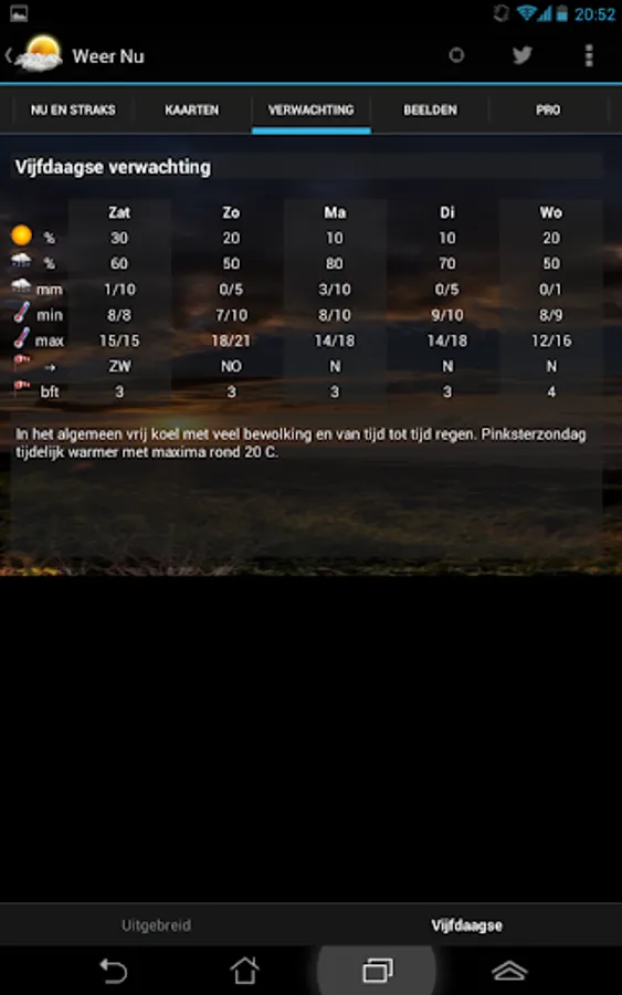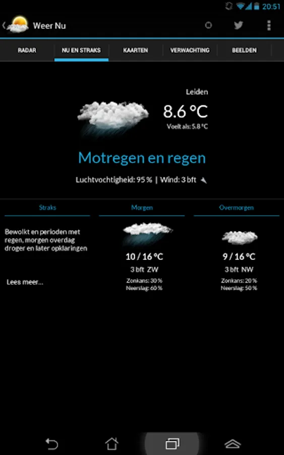 Now the weather zusterapp our weather app, the weather in the Netherlands, and will be one of the most complete weather apps Netherlands. This app is only available on Android 4 and higher.