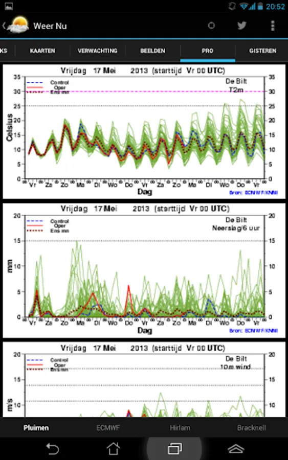 √ Expectations: per hour, two days ahead of the five-day forecast and the expected text + KNMI expectation tickets.