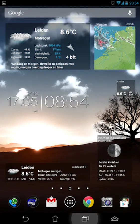 √ And the Sun and Moon widget with rise and fall times, moon phases and -verlichtingsgraad.