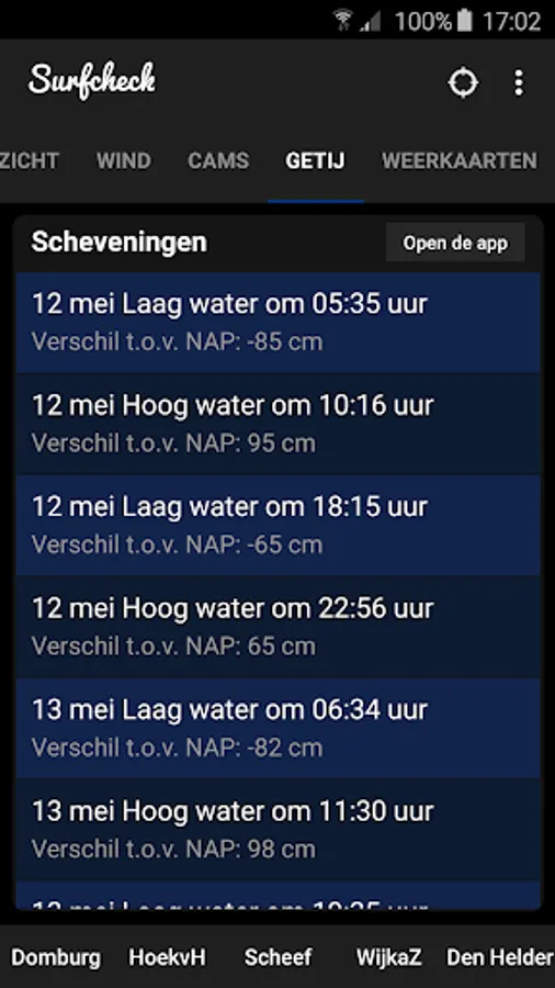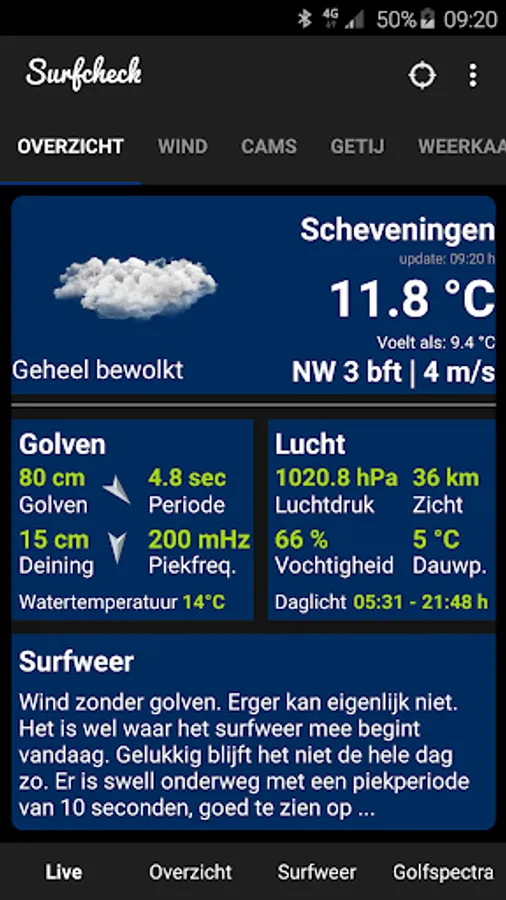 Offers a great overview of the current surf in the North Sea and the atmospheric conditions in the Netherlands.