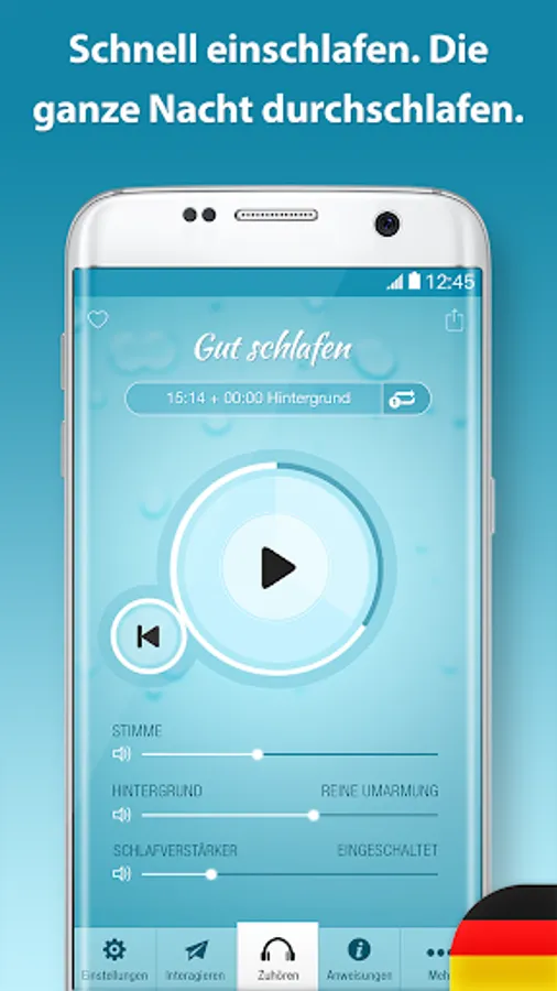 Sleep-well hypnosis can be tried out freely and is effective * with the standard settings. A one-time in-app purchase is only required if you want to change the default settings. (Each of our free hypnosis apps includes its own in-app purchase; in-app purchases cannot be split between separate apps).