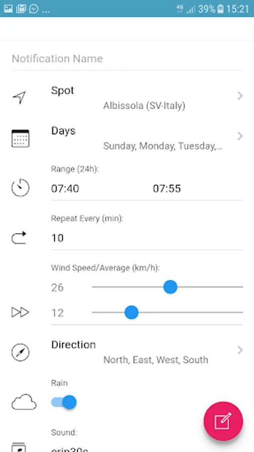 Not only you can setup wind notifications for different spots but also multiple notification for the same spot.