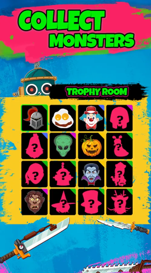 You just need to aim at the target, tap on your screen, hit, and defeat monsters one by one. The more monsters you hit, the more knives you can obtain. Hit all of the monsters in every 5 stages and get a valuable knife!