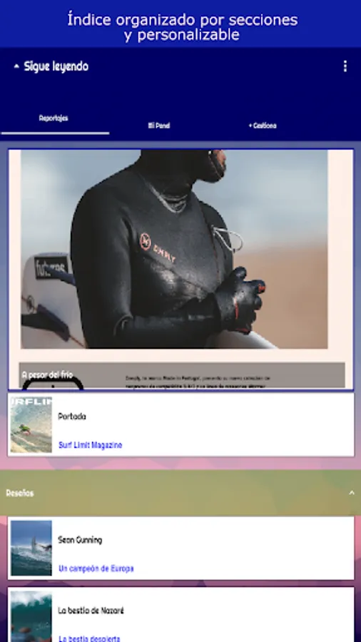 Surf limit Magazine offers a quarterly magazine that gathers the best selection of news and guided visits of each surf destination. Its objective is to reinforce a lifestyle around a product that has been little differentiated in the market and that generates attention and quality to consumers when planning their trips or purchases with the guarantee that they will enjoy the latest information from the sector backed by the best experts in the national industry.