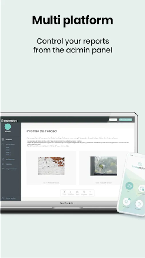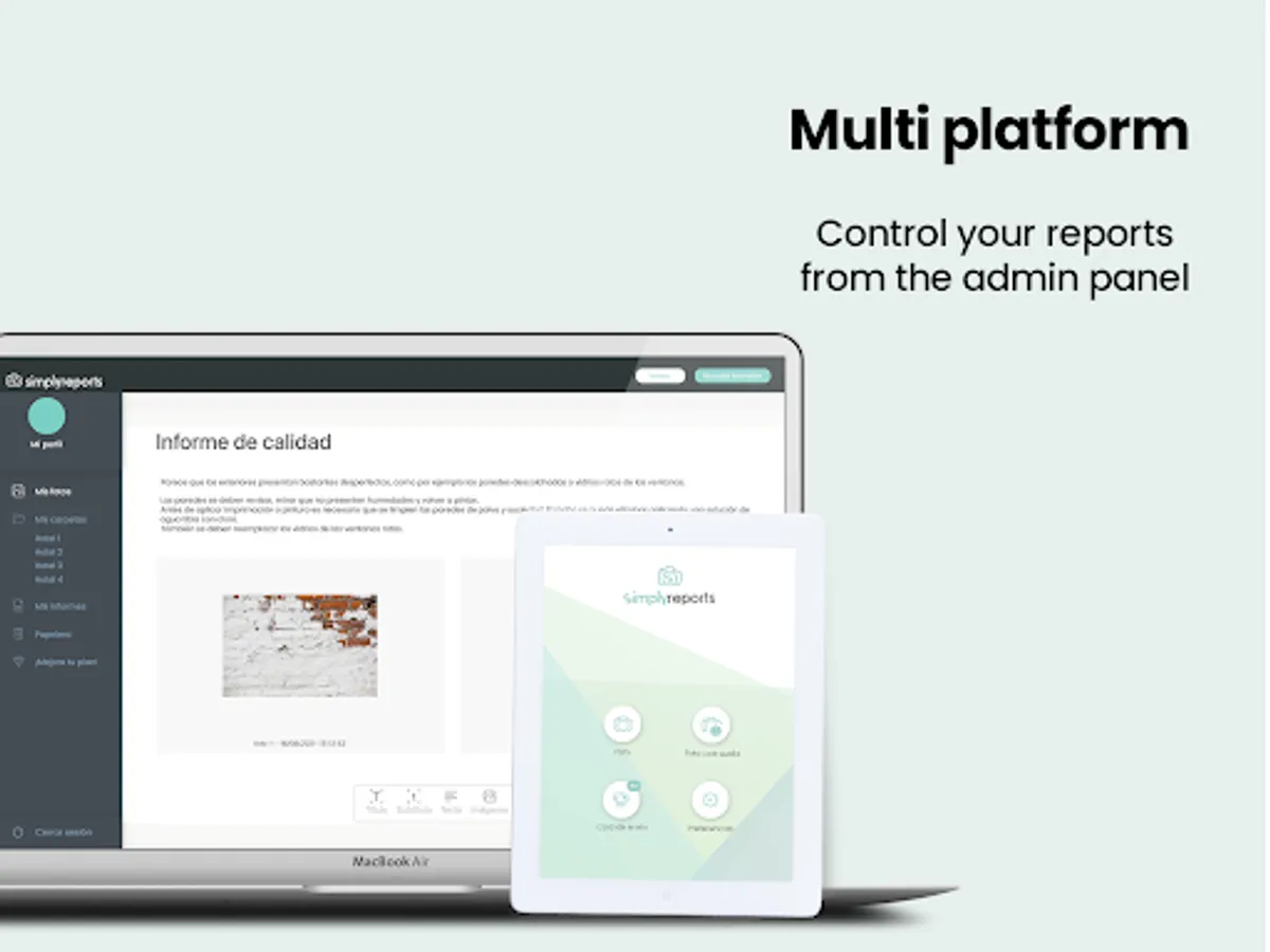 1. The mobile APP. With which you can take the photos you want, add comments or voice notes and send them to your administration panel.