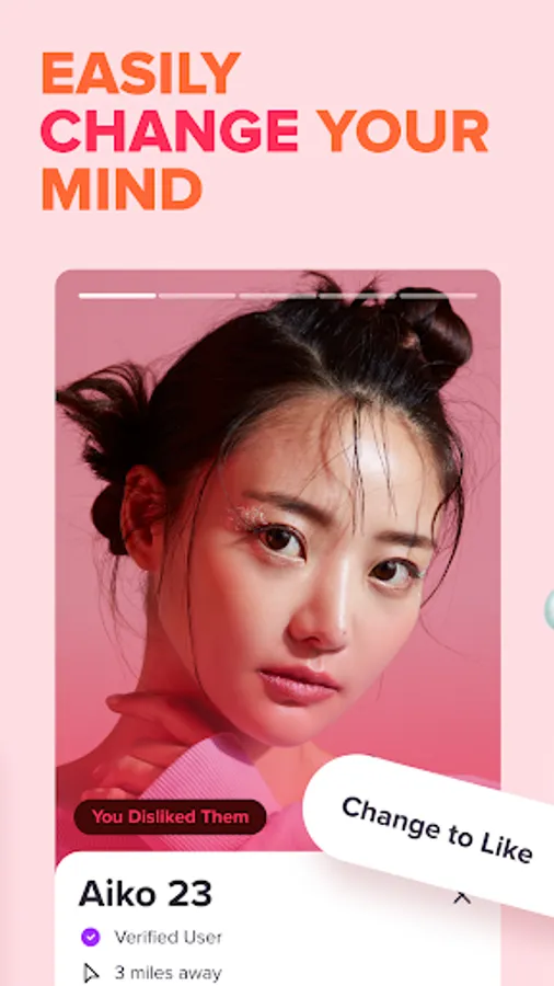 • Rewind – Accidentally swiped left? Hit the rewind button anytime to change your decision.