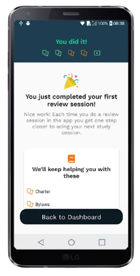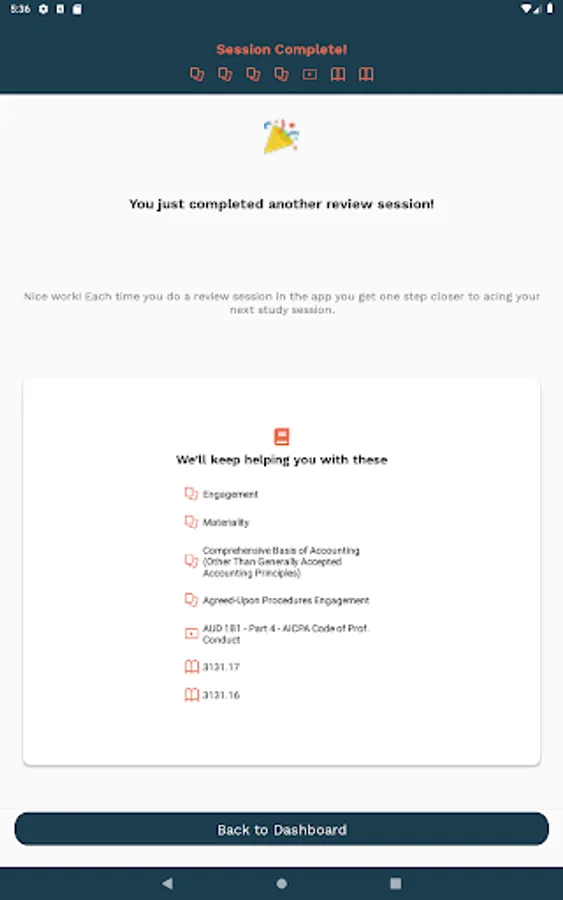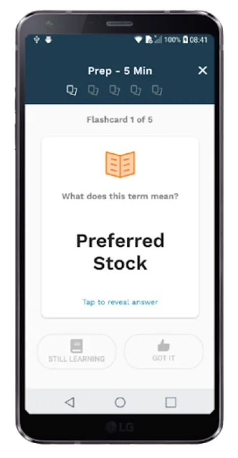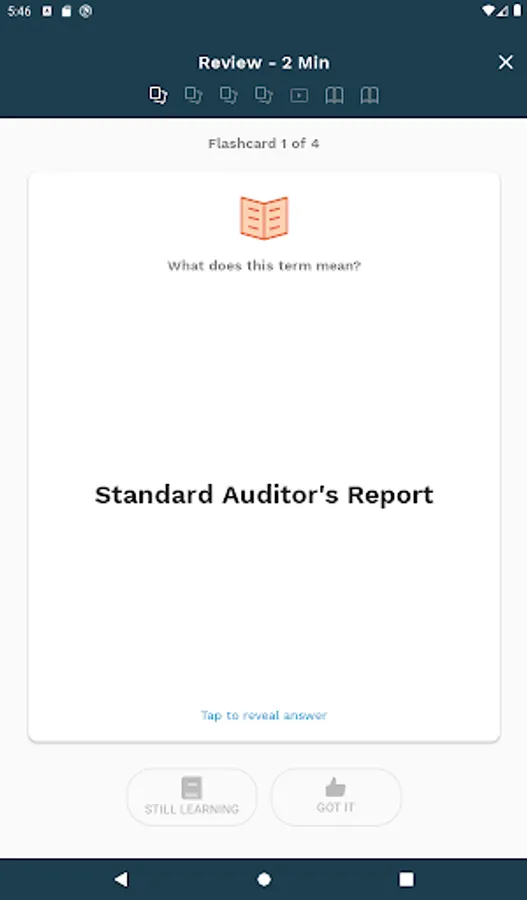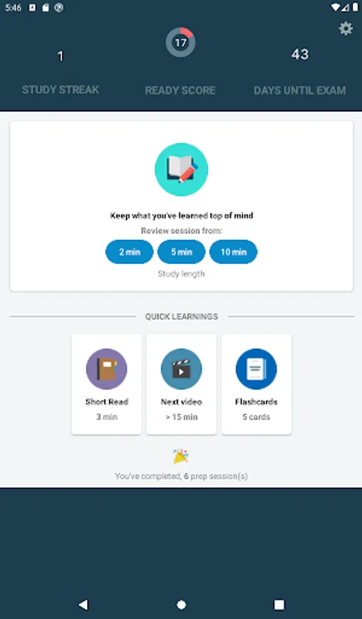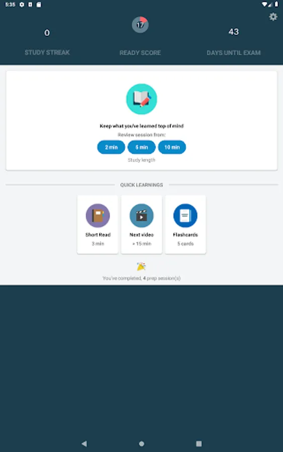The app offers study increments of two, five, and 10 minutes, offering learning material in the form of videos, flash cards, and other references, along with options to select “Still Learning” or “Got It” for each piece of content. The learner decides their level of understanding and the system reports their progress. The app also utilizes Surgent’s ReadySCORE™ product, which aims to inform users if they are ready to pass the exam prior to sitting for it.