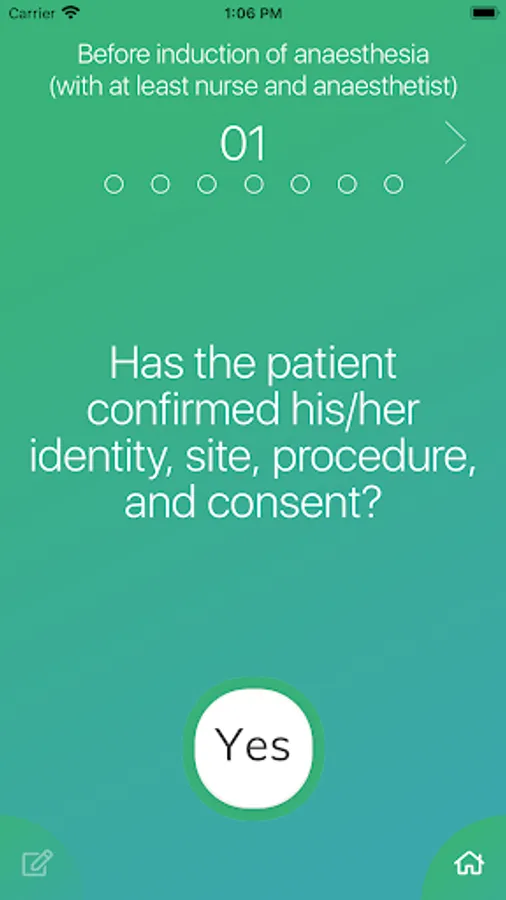 The World Health Organization published the Surgical Safety Checklist in 2008 as a way to increase the safety of patients undergoing surgical procedures. The use of the checklist is associated with a significant decrease in complications and death related to surgery and anaesthesia. This App is intended to provide surgical teams with an electronic format of the Checklist and make the use of the checklist easier in all surgical settings. It is recommended for all members of a surgical team including surgeons, anaesthesiologists, nurses and assistants.