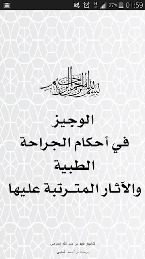 This book "brief in terms of medical and surgical implications" by Fahd bin Abdullah al-Hazmi, put it between your hands to be an indication for each medical practitioner for surgery, shows his legal rulings and look of our Islamic religion to the issues and the different aspects that affect surgical treatment, between Hlalha and Hramha, and opinion-Shara in its causes and treatments have taken place in our time and did not know previously, Kjerahh cosmetic and organ transplantation, and if you do not agree with everything contained in it, pleading with the Lord Almighty that the benefit of this application our fellow surgeons Muslims difference in their jurisdiction, and to reward every good writer is explained and between and interpreted.