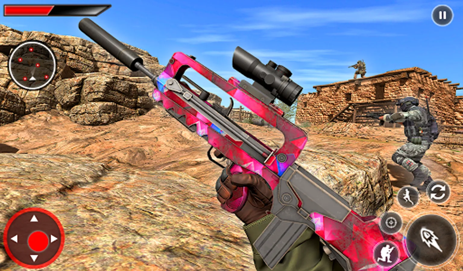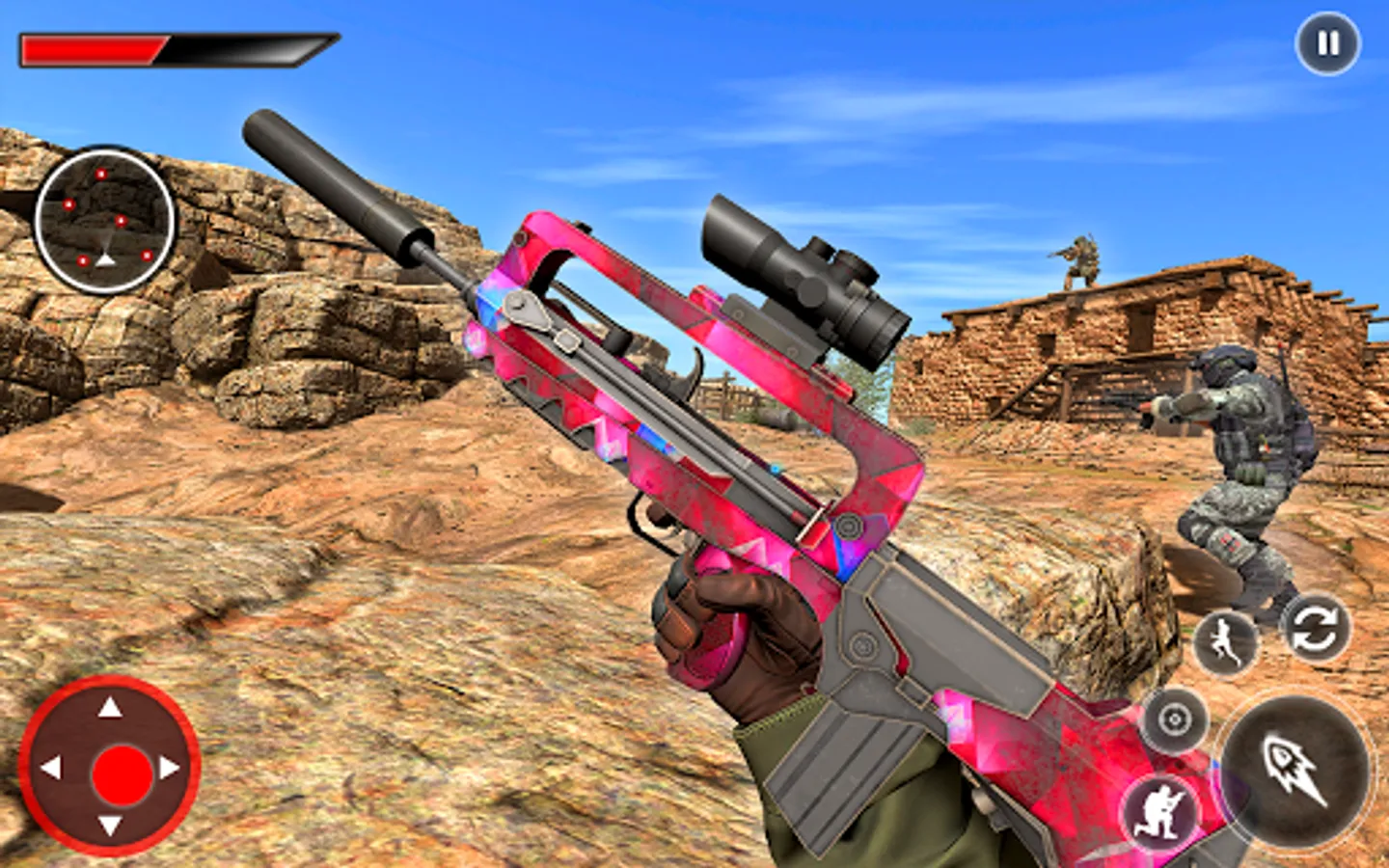 You are the leader during the battle against terrorist groups in this modern army action shooting game and also as a leader of the surgical strike group you have to become the best army snippiest and gun, shooter. If you are a survival hero of army shooting game so hit all the terrorists and don’t leave them alive at any cost! There are different targets in this 3d action shooting game which you have a deal with different guns as per situation- so first of all target the enemies, target their Jeeps and Helicopters, target their houses with grenades and kill the terrorist with long-range sniper rifles.
