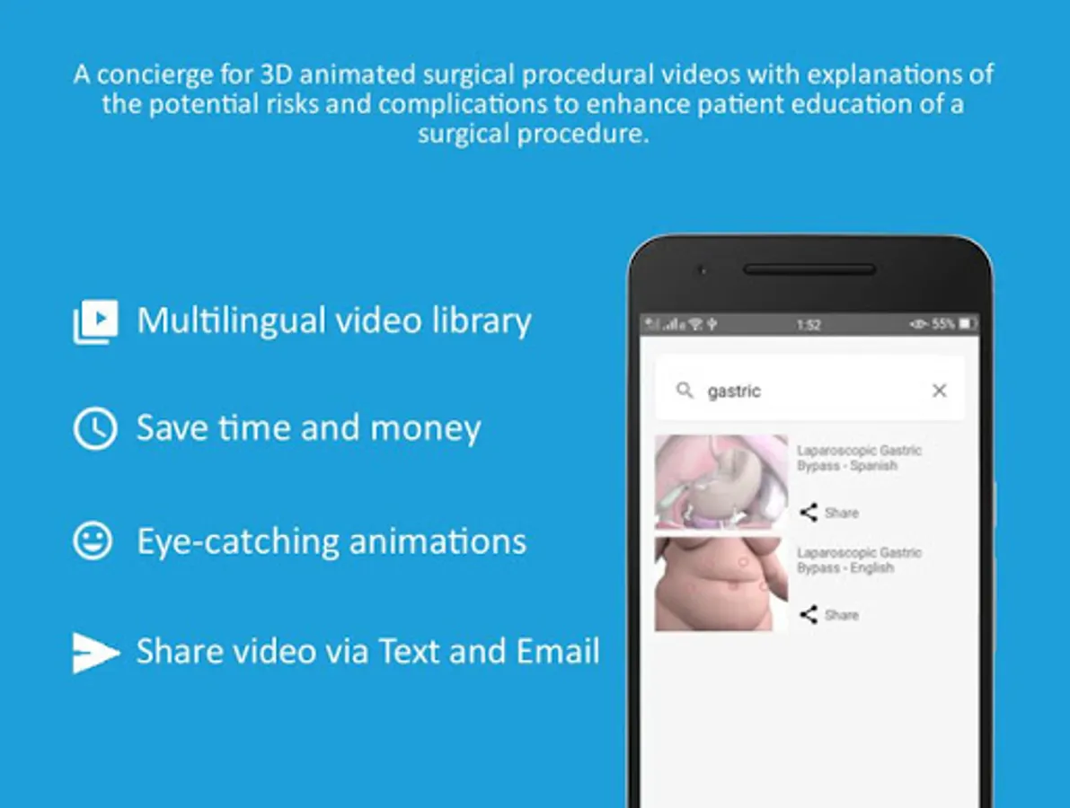 SurgTalk® is a concierge for 3D animated surgical procedural videos with explanations of the potential risks and complications to enhance patient education of a surgical procedure.