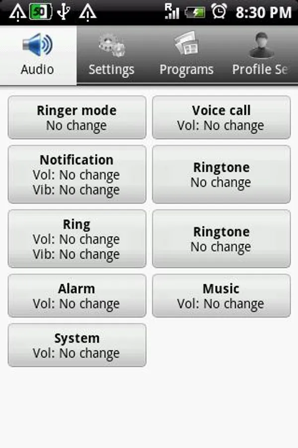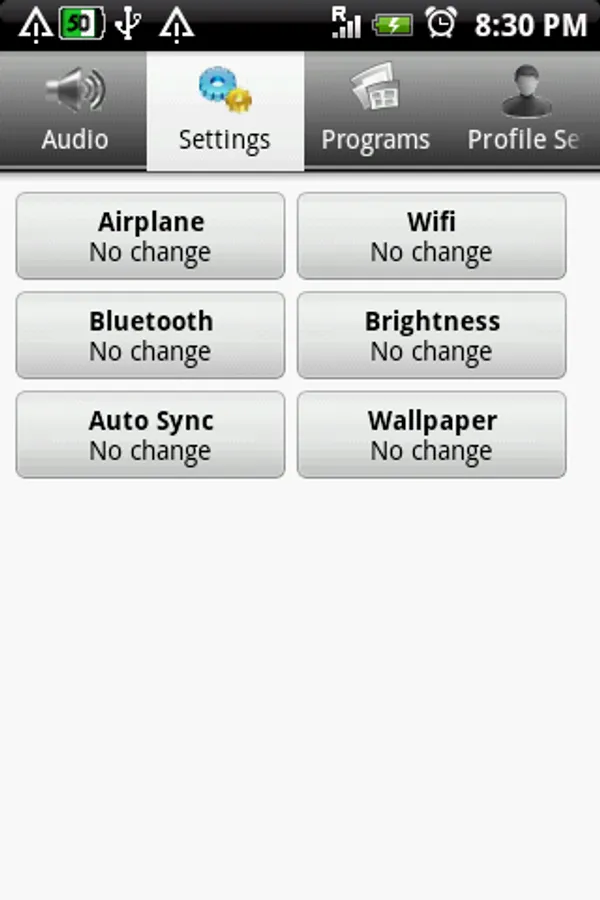 Profiles lets you change your phone's settings and volumes all in one convenient application. Setup multiple profiles to easily change your settings for different locations, home, school, work, car, etc.