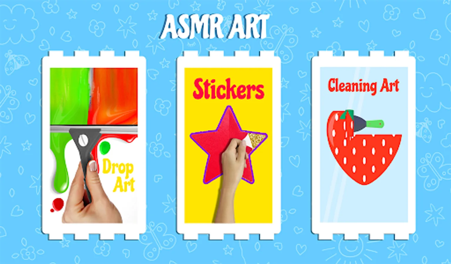 The first ever experience with all the ASMR art challenges under one game! Unleash the artist in you and try all the famous viral art challenges & art compilation under one roof and enjoy your favorite ASMR art games including colored sand painting using ASMR sand art particles, the new trendy swipe art by swiping paint drops using a wiper, turn different paint drops into colorful art. Enjoy satisfying window cleaning art Do paint mixing enjoy rangoli art and the famous dot art on stones and different objects. Enjoy these oddly satisfying set of art games for an ultimate r elaxing ASMR art experience under one app. Each game is a trend itself and you will enjoy this relaxing experience in your mobile followed by relaxing animations, satisfying paint mixing with ASMR triggers