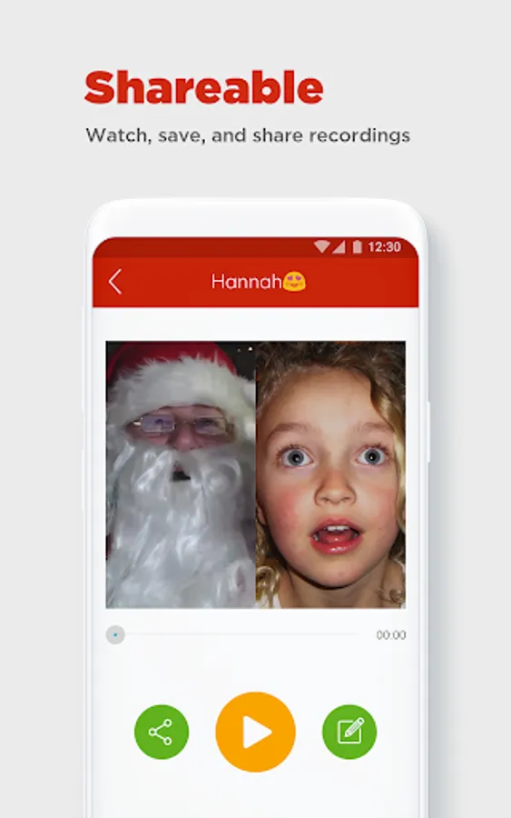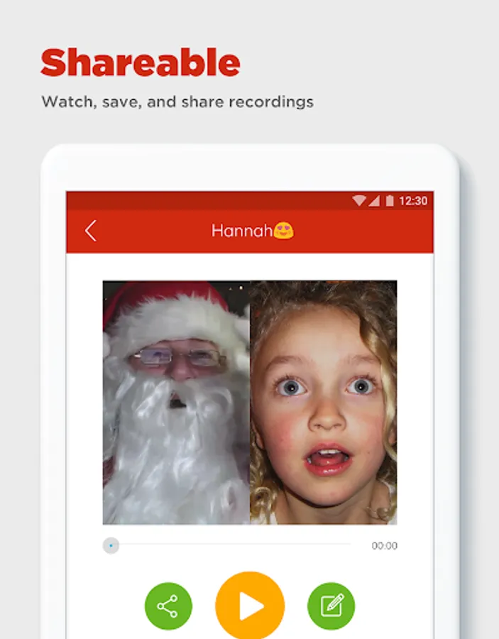 • Share recordings of your kids and simulated Santa having a video chat with the rest of the world on major social sites