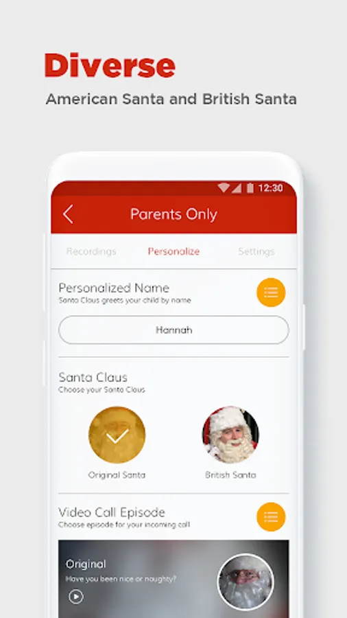 • Choose to have your simulated calls as incoming (Santa calls you) or outgoing (you call Santa)