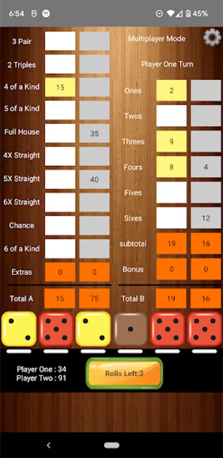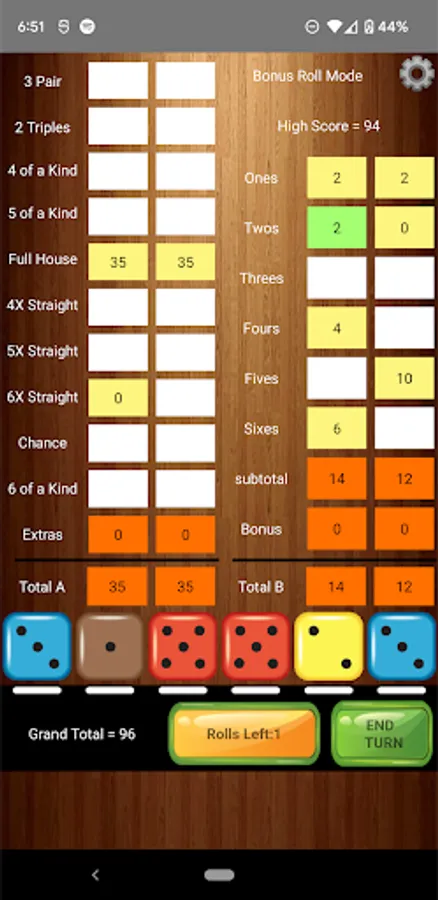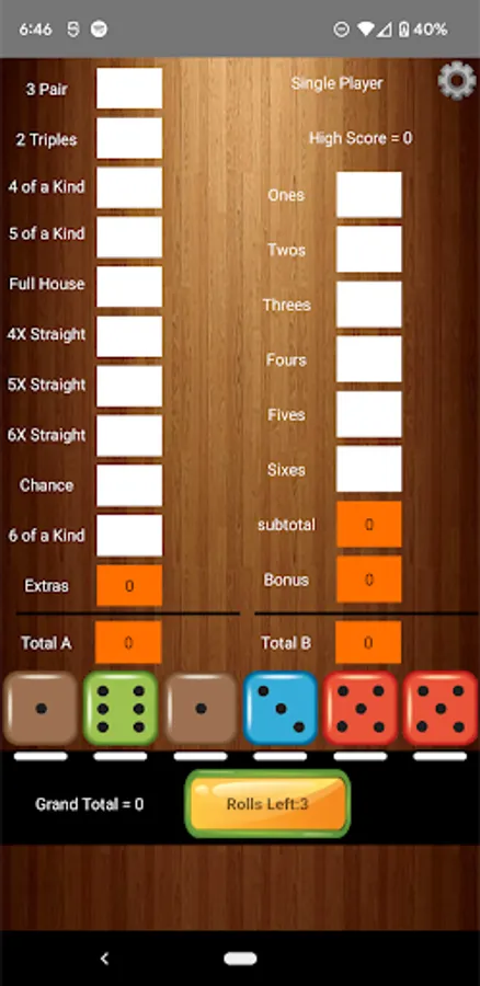 A Game Similar to Yacht only played with Six Dice instead of Five. Players have 15 rolls to score as many points as possible. Also includes "Single Mode", "Double Mode", "Sequential Mode", and "Bonus Roll Mode". Extended Rules Explanation in game. Also includes Scoreloop for competing online against other players.