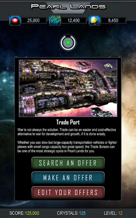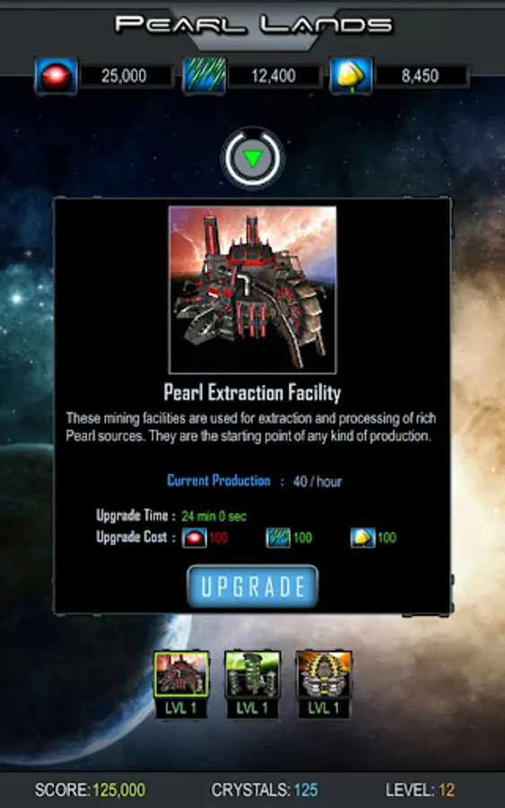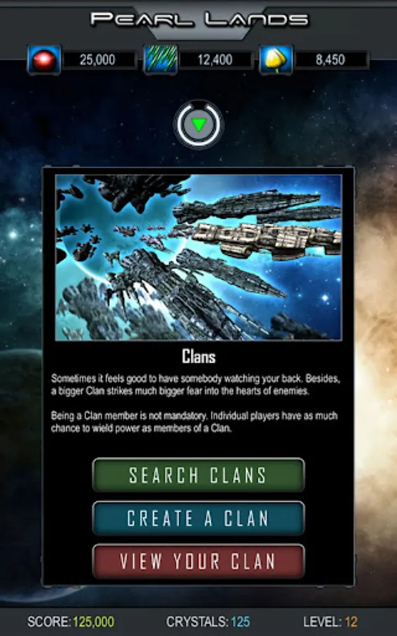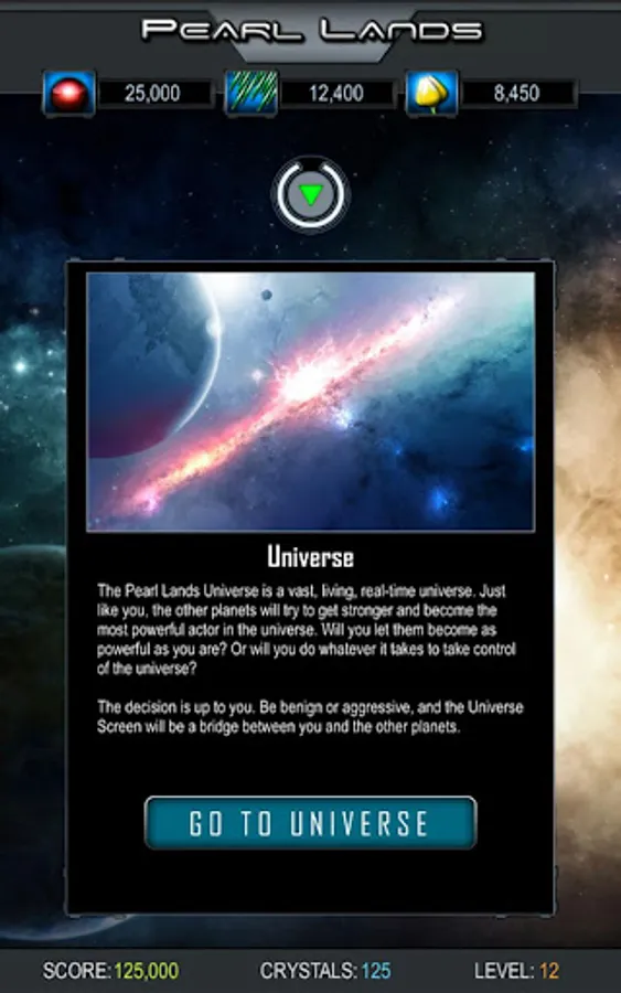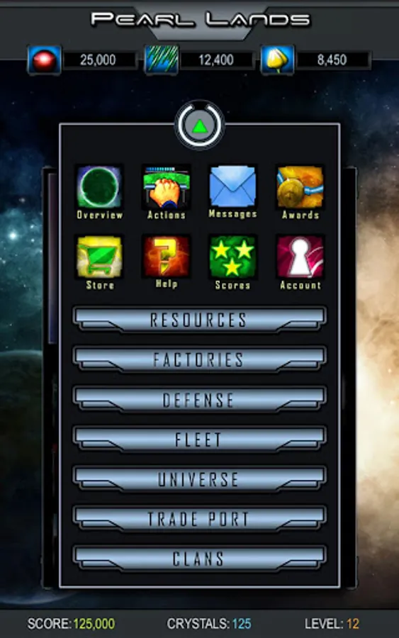 Pearl Lands is a real time space strategy game where you can manage your planet, harvest resources, build a galactic army, explore the universe and interact with other planet and leaders.