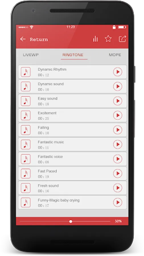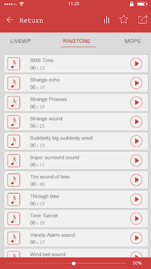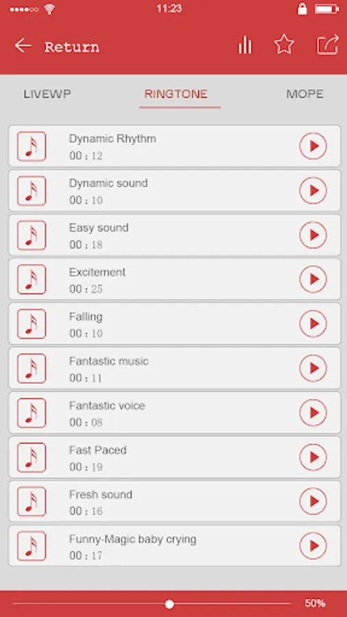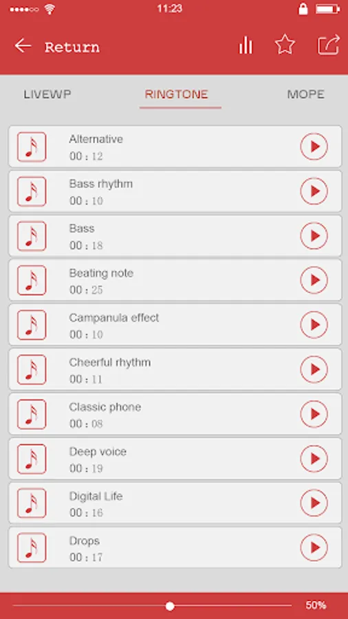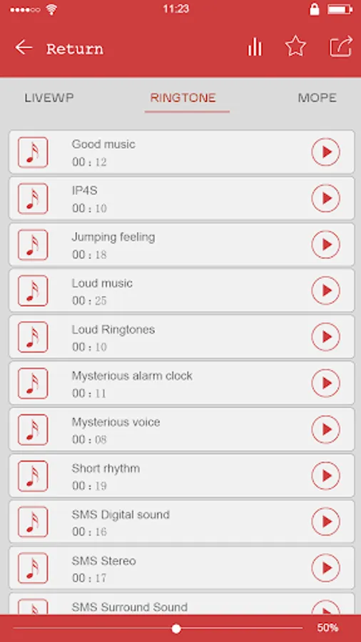 ▼Open this free ringtones application, you can press the " play " button to listen to the MP3 music.