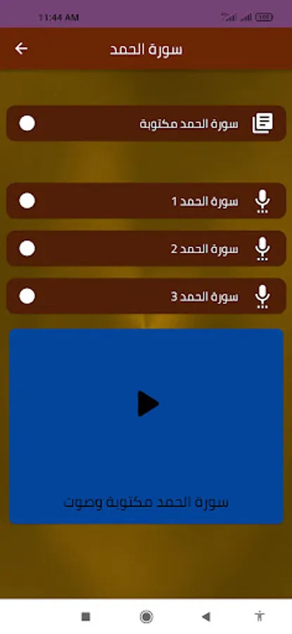 يمكنك التنقل بين أزرار تطبيق سورة الحمد بسهولة